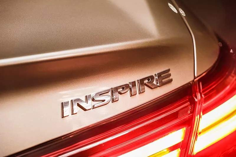 當(dāng)然漂亮的前臉還離不開(kāi)大燈的畫(huà)龍點(diǎn)睛,由6近光+3遠(yuǎn)光共計(jì)9顆LED燈珠組成的全LED燈組像陣列般排開(kāi),無(wú)論是白天還是夜晚都讓INSPIRE更加顯目。如果你按下雙閃或者撥動(dòng)轉(zhuǎn)向燈桿,就會(huì)發(fā)現(xiàn)INSPIRE采用了流動(dòng)式轉(zhuǎn)向燈設(shè)計(jì),隨著燈帶的流動(dòng)科技感也隨之上升。來(lái)到尾部,紅色的尾燈組讓INSPIRE顯得動(dòng)感十足,翹起的小尾翼以及雙邊共雙出的排氣也都為運(yùn)動(dòng)風(fēng)格的營(yíng)造做出了貢獻(xiàn)??偟膩?lái)說(shuō),INSPIRE的外觀極具魅力,時(shí)尚而不張揚(yáng),在細(xì)節(jié)處又營(yíng)造了恰到好處的運(yùn)動(dòng)風(fēng)格。尤其我們的試駕車(chē)還采用了金色車(chē)漆,更是平添了旗艦質(zhì)感。