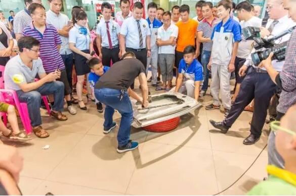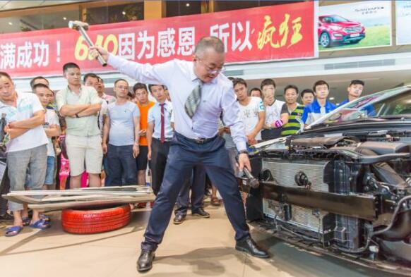 特地請(qǐng)上一名想買車的客戶上來瘋狂砸車,