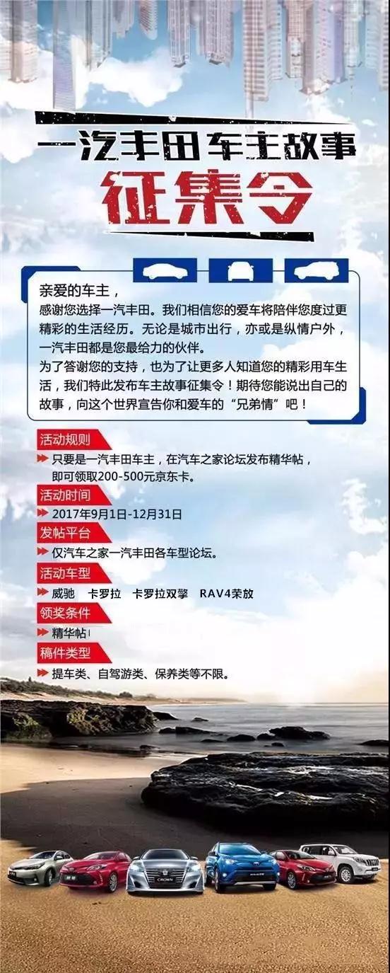 ⑥獎(jiǎng)勵(lì)金額:200-500元京東卡,發(fā)的越多賺的越多?。í?jiǎng)勵(lì)待精華帖經(jīng)一汽豐田廠家審核通過)