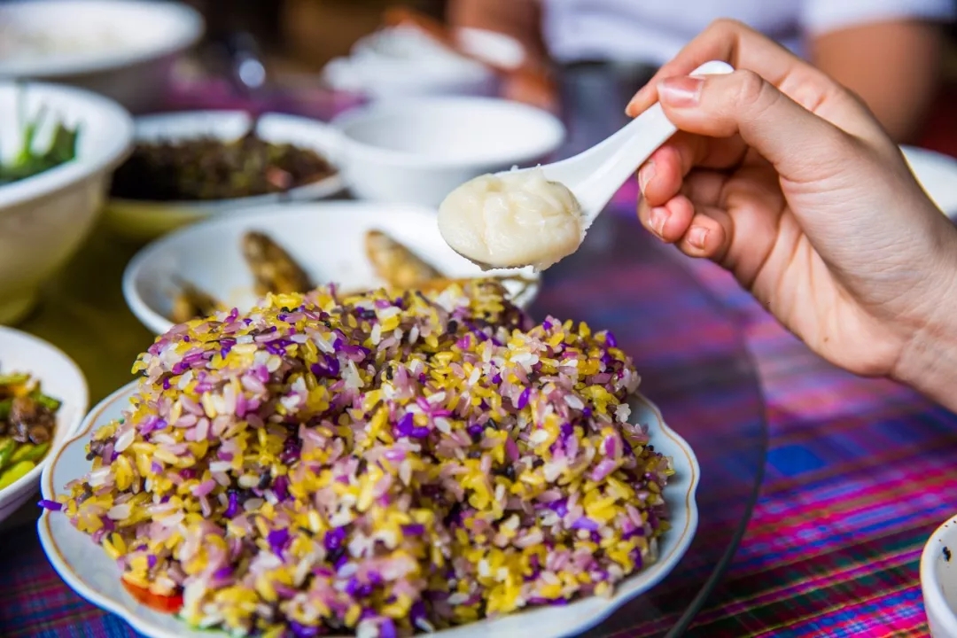 女主人用竹筒蒸出來的花米飯,配上這里地道的蜂蜜,簡直不能更美味。
