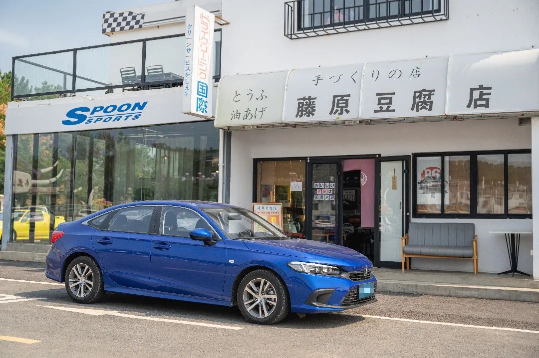 當經(jīng)過了店員的同意后,終于可以放心大膽的合影了,說實話這個場景我夢見數(shù)次,當我把思域安靜的停在藤原豆腐店的門口到和店員交流再到來拍照的過程中,雙手總是忍不住的在顫抖,可能因為熱愛吧,讓我這顆時常冷靜的心變得再也無法冷靜下來,仿佛沉靜的湖水中落下石子,波瀾起伏內(nèi)心久久不能平靜。