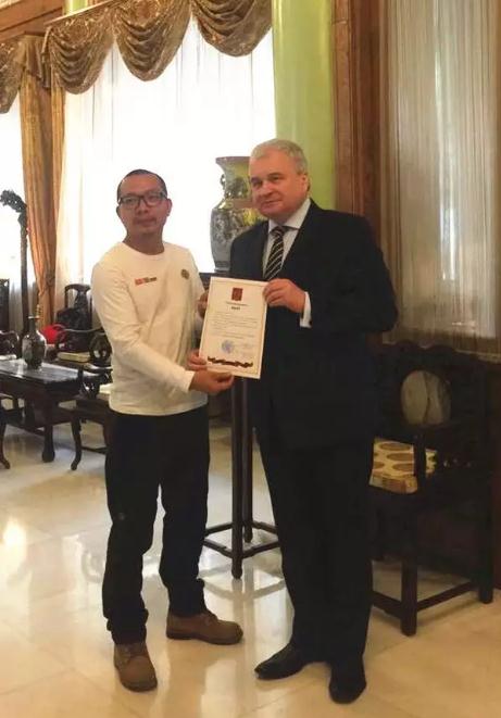 本次穿越之旅,吳郁主要駕駛改裝過的極地汽車普拉多,從廣東湛江出發(fā),一路長驅(qū)北上,最終抵達北極。吳郁這次穿越之行不僅取得俄羅斯地理學(xué)會和中國地理學(xué)會的認可和支持,并于24日在北京接受了俄羅斯駐華大使的接見。俄羅斯駐華大使杰尼索夫認為吳郁的探險精神與俄羅斯的民族情懷高度吻合,不僅對吳郁個人表達了高度的贊揚,同時對此次的“行者無域”亞洲大陸穿越之旅傳遞了美好祝愿,此次活動將成為中俄兩國民間文化的交流之旅,進一步促進中俄兩國友誼。
