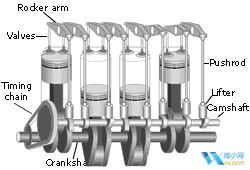 曲軸材料是由碳素結(jié)構(gòu)鋼或球墨鑄鐵制成的,有兩個重要部位:主軸頸,連桿頸,(還有其他)。主軸頸被安裝在缸體上,連桿頸與連桿大頭孔連接,連桿小頭孔與汽缸活塞連接,是一個典型的曲柄滑塊機構(gòu)。