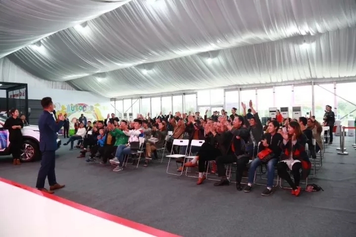 現(xiàn)場車友們聆聽活動規(guī)則并熱烈鼓掌