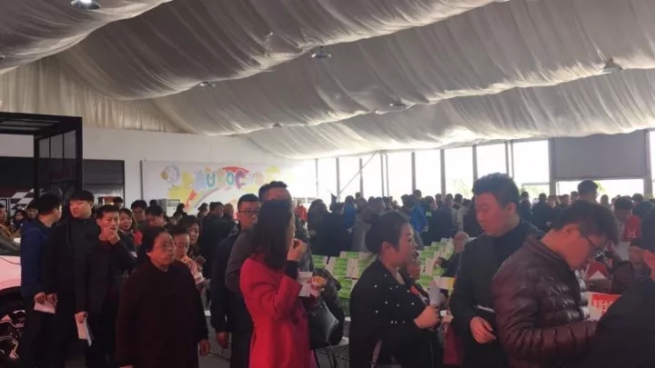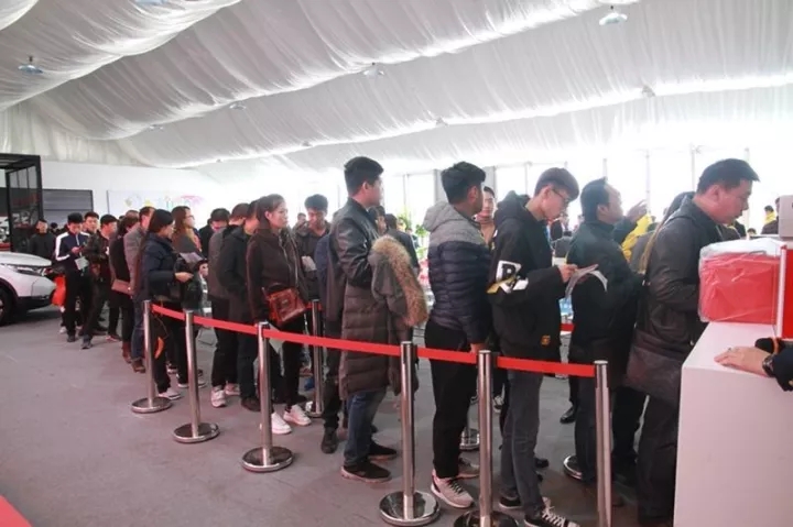 現(xiàn)場參與活動的車友們有序排隊等待報名