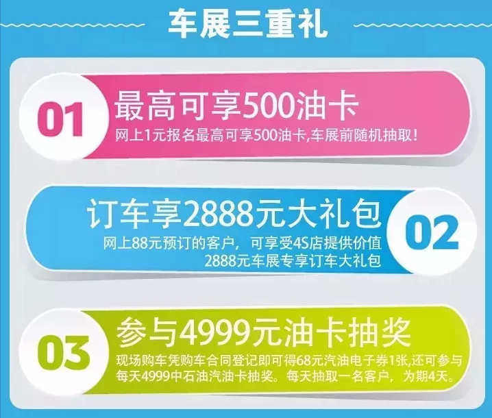 ①線上1元報(bào)名,現(xiàn)場(chǎng)出示購(gòu)買(mǎi)支付截圖可兌換價(jià)值20元車(chē)展門(mén)票。