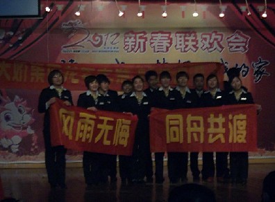 寒冷擋不住天嬌集團(tuán)似火一樣的熱情,在昭陽(yáng)樓的大門前,紅燈懸掛,車水馬龍,天嬌集團(tuán)在這里歡聚一堂,夜幕中,霓虹燈下一張張笑臉呈現(xiàn)出一派非凡的熱鬧景象,進(jìn)入活動(dòng)室,這里已經(jīng)聚滿了人,人們?cè)缭绲貋?lái)到會(huì)場(chǎng)待晚會(huì)開(kāi)始的那一刻,節(jié)目開(kāi)始前,一首《在路上》配上天嬌集團(tuán)的發(fā)展視頻預(yù)示著天嬌蒸蒸日上。隨后,高董事長(zhǎng)總結(jié)了過(guò)去一年所取的成就,對(duì)奮斗在公司的所有員工表示了感謝,展望了天嬌的未來(lái)對(duì)于天驕集團(tuán)他充滿了必勝的自信心和自豪感,他滿懷熱情,衷心祝愿天嬌全體員工以及家屬們新年快樂(lè)、萬(wàn)事如意、合家幸福!高董事長(zhǎng)的新年致辭贏來(lái)了全場(chǎng)的熱烈掌聲,在一片吉慶祥和、喜氣洋洋的大