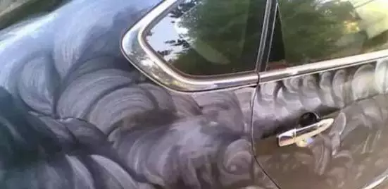 很多老司機,甚至汽車店的小工都喜歡畫著圓圈打蠟,其實這種做法是非常錯誤的。下圖可以看出,圓圈打蠟有很多地方蠟是不均勻的,上蠟效果差,還會令車漆表面產(chǎn)生同心圓狀光環(huán)效果,對車漆不好。正確的做法:直線方式和橫豎線方式交替進行,以雨水流動的方向打最后一道。